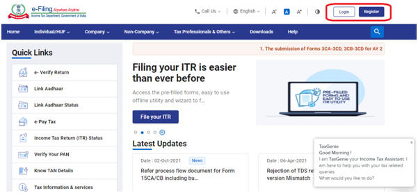 यदि आप एक नए उपयोगकर्ता हैं, तो आपको पहले ई-फाइलिंग पोर्टल पर पंजीकरण करना होगा।